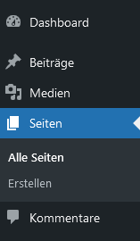 Um Ihrer WordPress-Website Seiten hinzuzufügen, navigieren Sie im linken Menü zu „Seiten“ und klicken dort auf die Schaltfläche „Neu hinzufügen“.