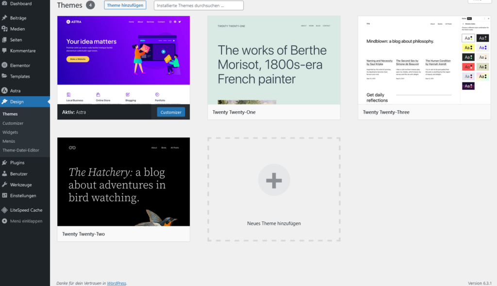 Nehmen Sie sich Zeit, um das passende Thema für Ihre Website zu finden. Wenn Sie etwas auswählen, das Ihnen nicht gefällt, können Sie es jederzeit wieder ändern.