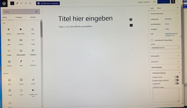 Alternativ können Sie im rechten Menü verschiedene Einstellungen für die gesamte Seite ändern, wie zum Beispiel den Autor, den Permalink (URL) der Seite, das angezeigte Bild und andere Aspekte.